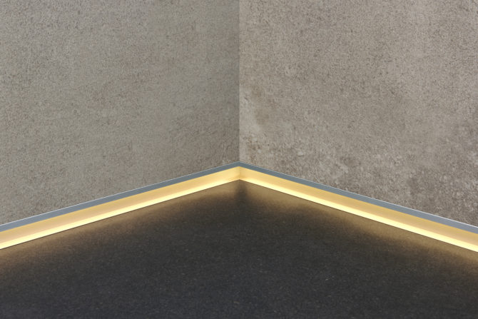 Perfil empotrable de aluminio anodizado con tapa difusora de policarbonato, propone una nueva estética duradera en el tiempo. Funciona en paredes como elemento delimitador y genera atmósferas de intimidad en espacios con iluminación indirecta. Se instala junto con el revestimiento y cuenta con 2 finas alas que cubren imperfecciones. Provisto de un sistema de clips de fijación y terminales.