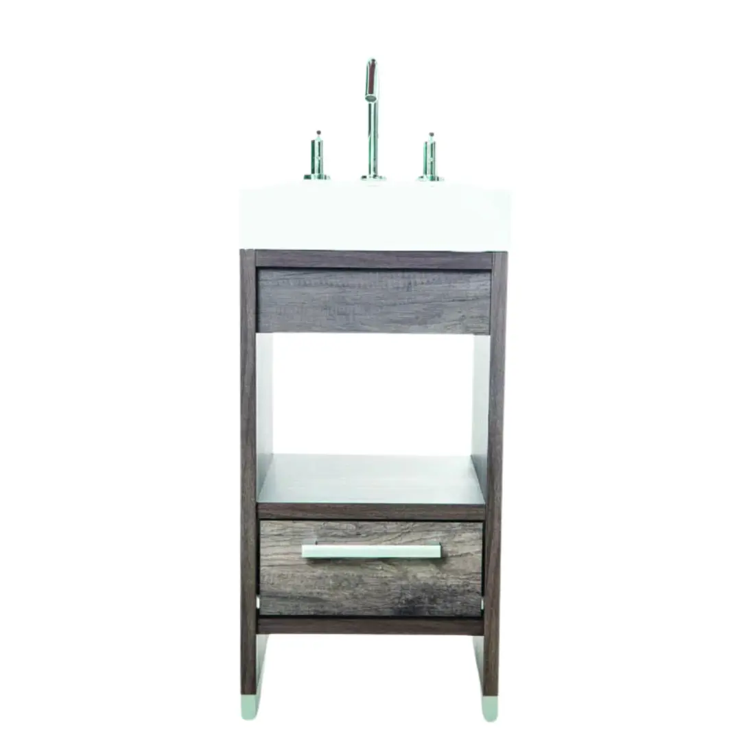 Las puertas laqueadas en blanco añaden modernidad y calidad al mueble, complementando cualquier estilo decorativo. Disponible en colores como Canyon Oak y Atakama, se adapta a tus preferencias y ambiente. La mesada, con opciones sintéticas o de loza, brinda funcionalidad y estética.