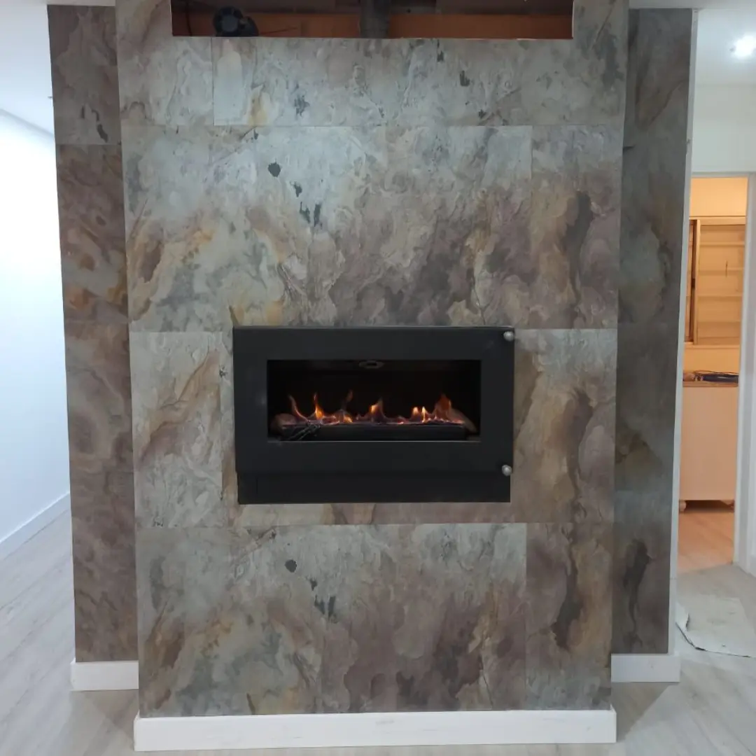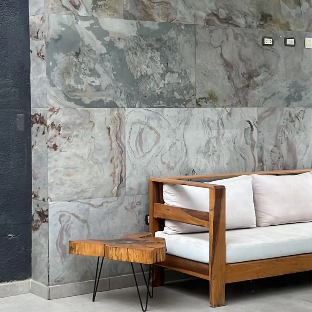 - Las placas de piedra natural son resistentes al agua, a las altas temperaturas y a los rayos UV, lo que la hace ideal para su uso en exteriores e interiores. También gracias a su respaldo de fibra de vidrio le permite tener una estructura revestida mucho más fuerte que la superficie original lo cual garantiza su uso en la mayoría de las superficies.