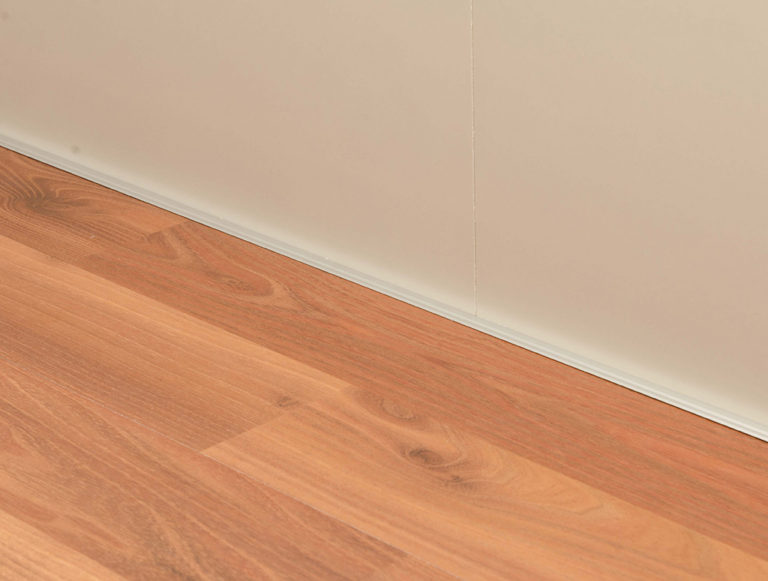 Perfil para pisos flotantes de uso perimetral que logra la perfecta unión entre pisos y paredes y oculta las imperfecciones y bordes de las placas. Se coloca en simultáneo con el revestimiento.